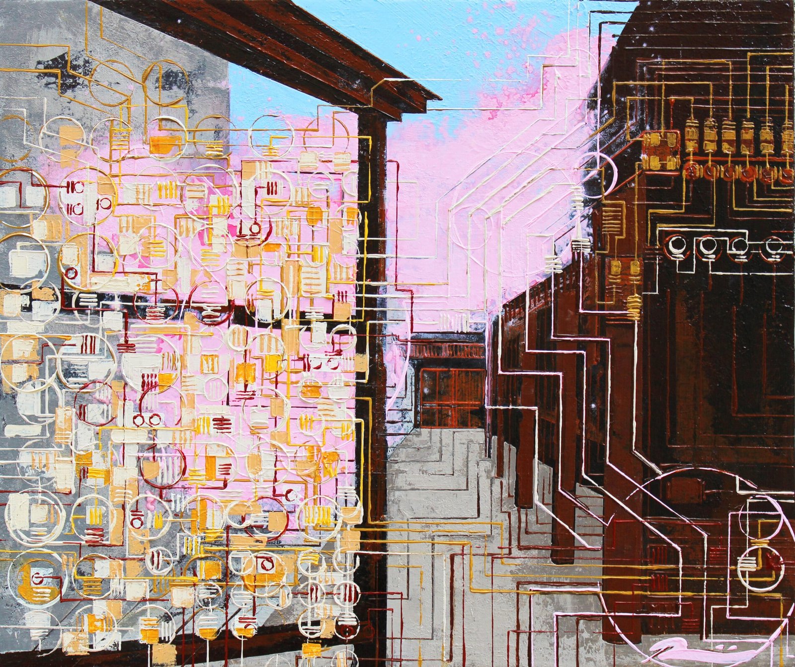Rebecca is an American painter living in Japan. Her professional experience as an electronics technician has deeply influenced visual metaphors in her work.